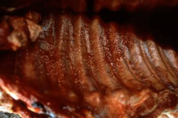 Fig: 1: Chest wall of a pig suffering acute Acpp. Note roughened surface with pleurisy.