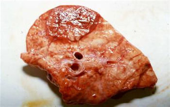 Fig 3: Typical ‘core’ lesion in lungs at slaughter from pig chronically infected with Acpp