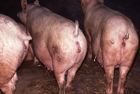 Whilst the condition is not frequently seen, it occurs most often in the middle growing period of 20-60kg.  Close observation may identify a single culprit as the instigator of it.  The condition is seen irrespective of tail docking, being seen in all situations from pigs with undocked tails to those with the shortest dock.